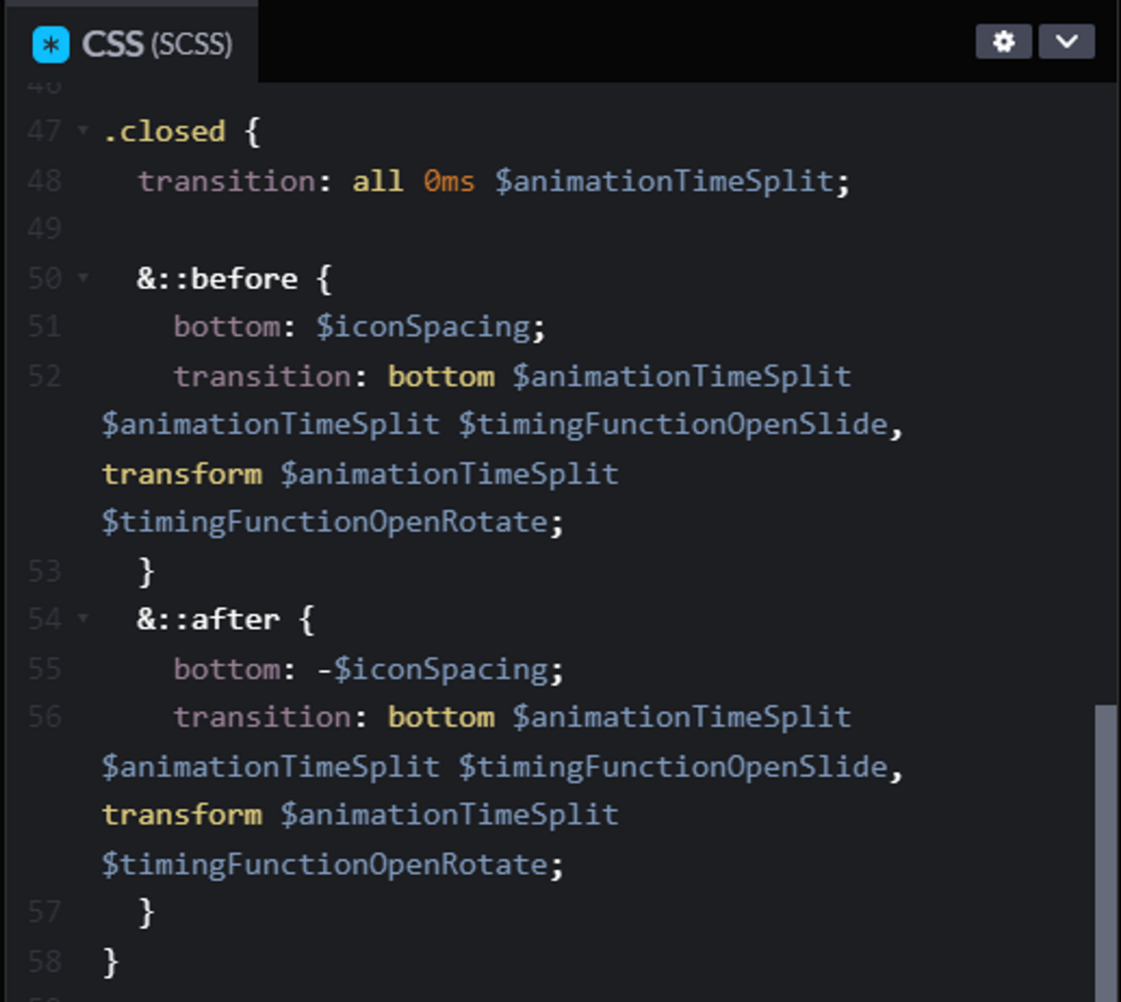 So when I started practicing my CSS skills, I used SCSS wherever possible. I built several challenge projects from FrontendMentor.io and created my own SCSS-configurable and reusable animated hamburger menu icon on CodePen.